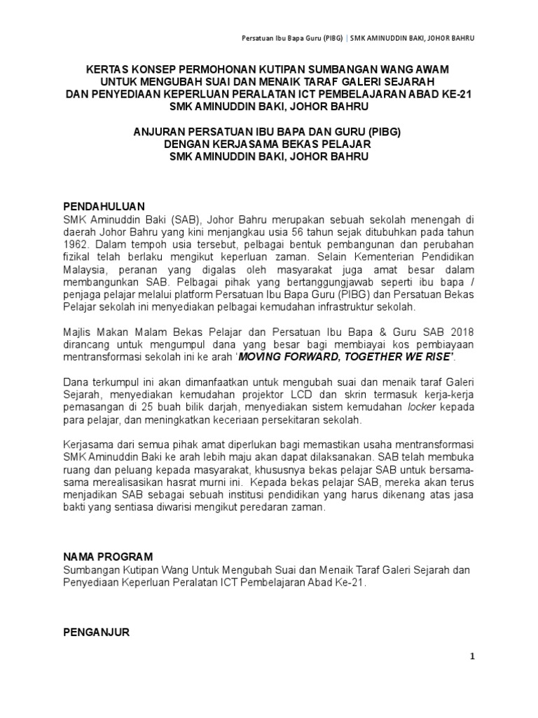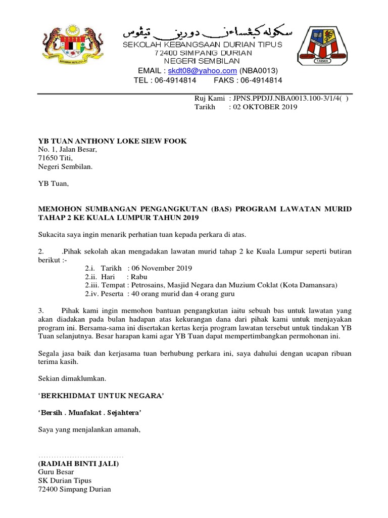 Contoh Surat Rasmi Memohon Sumbangan Pibg Surat Rasmi A