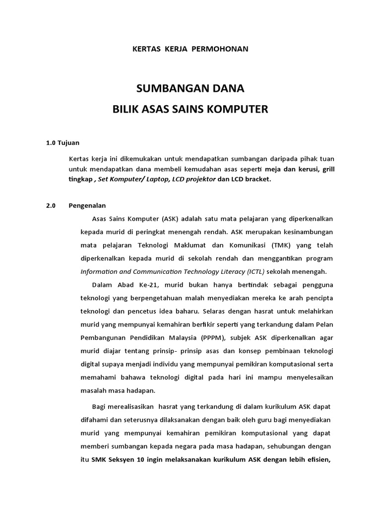Kertas Kerja Memohon Sumbangan Dana