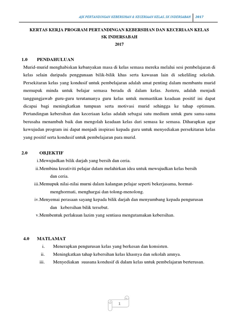 Documents Kertas Kerja Program Pertandingan Kebersihan Dan Keceriaan Kelas