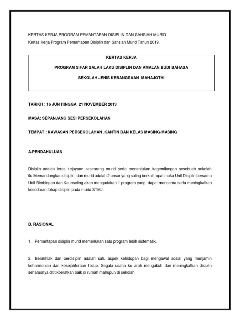 Kertas Kerja Program Pemantapan Disiplin Dan Sahsiah Murid