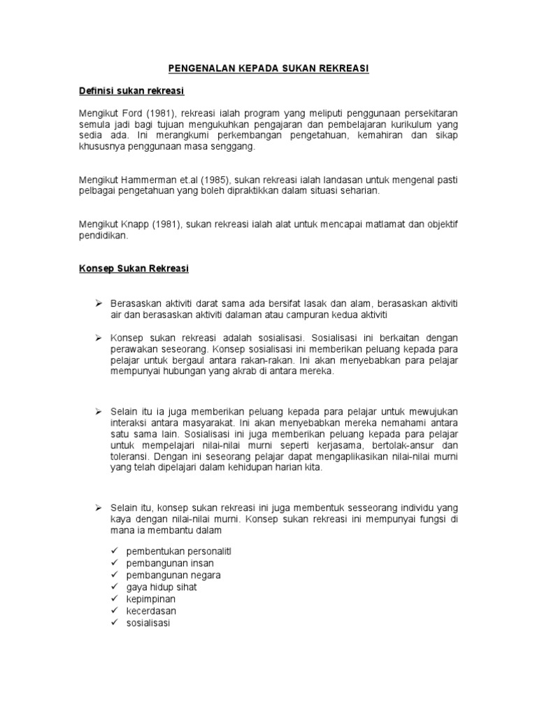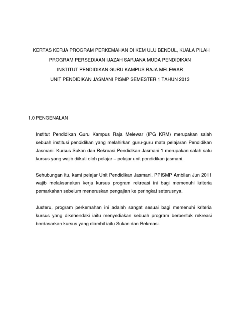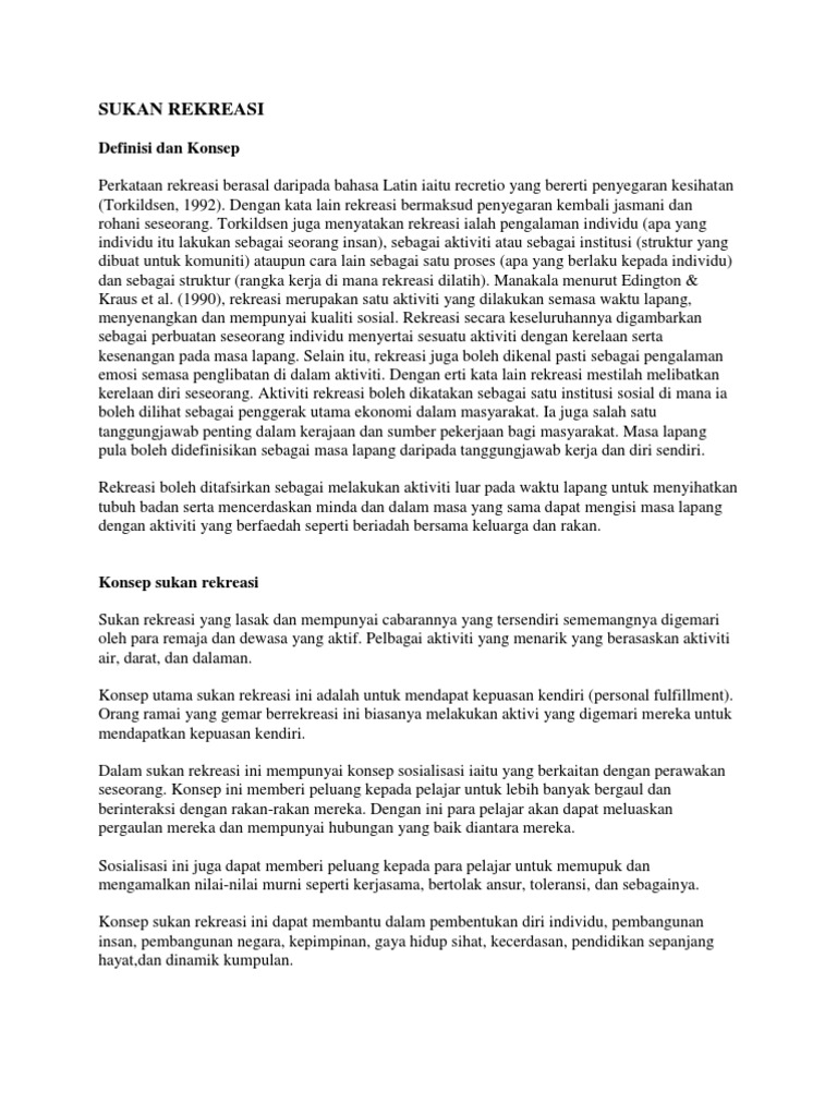 Doc Contoh Kertas Kerja Sukan Rekreasi Mohd Ghaztar Kamarull Ariffin Academia Edu