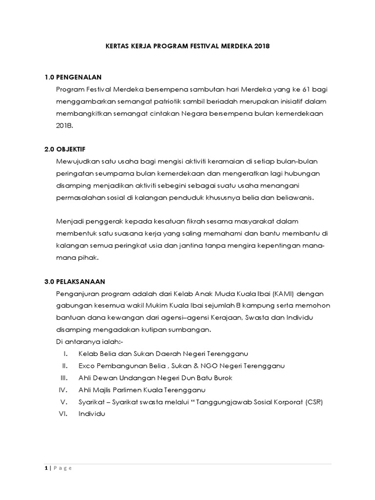 Kertas Kerja Cadangan Sambutan Bulan Kemerdekaan 2018 Pages 1 13 Text Version Anyflip