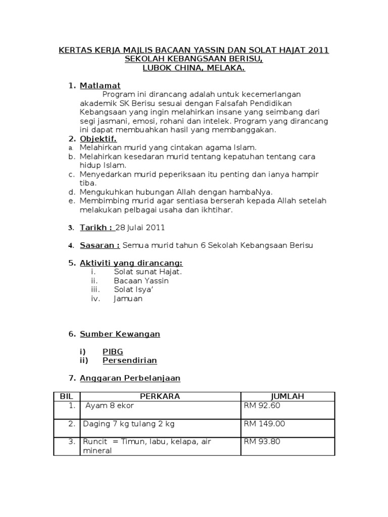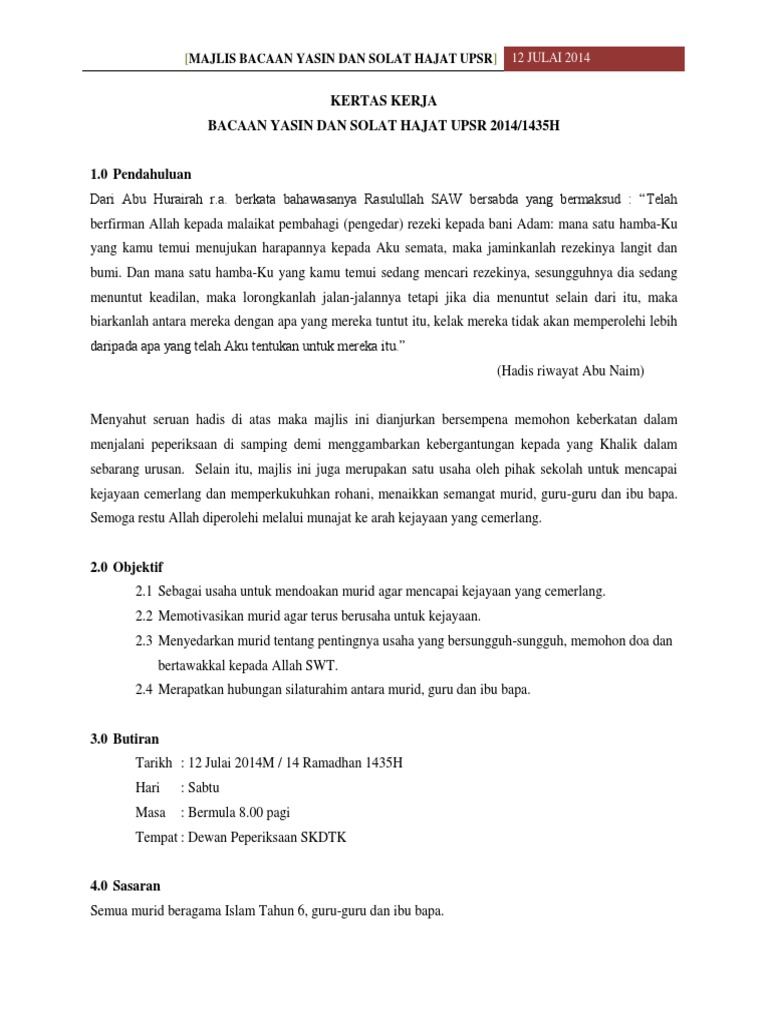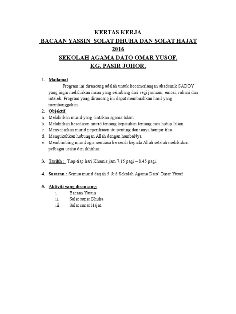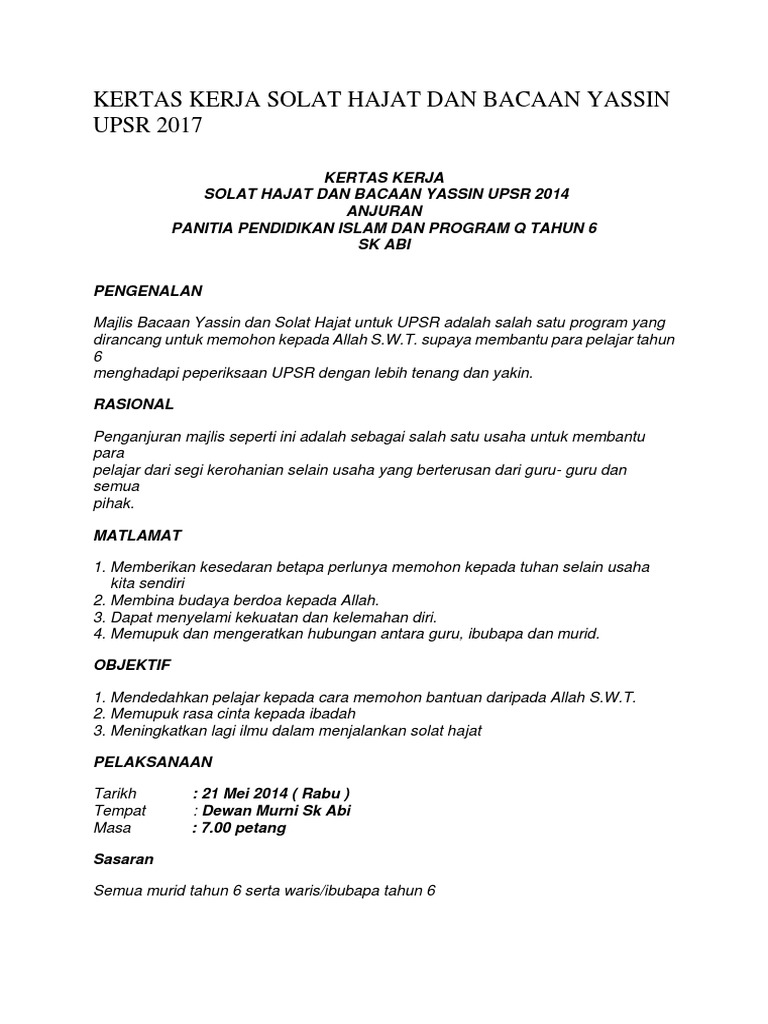 Di samping ibadah fardhu yang ditunaikan setiap hari dengan ibadah ini kita dapat membentuk jiwa dan rohani lebih mantap. Tarikh dan tempoh. Kertas kerja solat hajat dan bacaan yassin upsr. Kertas kerja solat hajat dan bacaan yassin upsr 2014 kertas kerja solat hajat dan bacaan yassin upsr 2014.