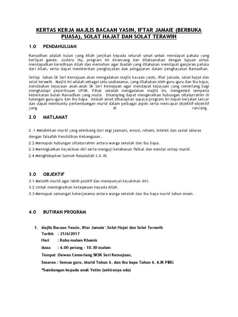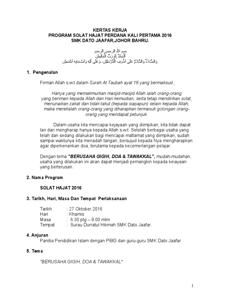 Kertas kerja solat hajat unit pendidikan islam dan moral. Academia edu is a platform for academics to share research papers. Contoh kertas kerja program solat hajat contoh kertas kerja solat hajat perdana contoh kertas kerja solat hajat contoh kertas kerja kem bestari solat contoh kertas kerja smart solat contoh kertas kerja program contoh kertas kerja perniagaan contoh kertas kerja hari keluarga contoh kertas kerja audit contoh kertas kerja pertandingan contoh kertas kerja lawatan sambil belajar contoh. Program qiamullail qiamullail merupakan satu amalan yang amat digalakkan bagi umat islam.