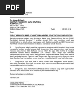 Contoh Surat Kiriman Rasmi Memohon Maaf Cute766