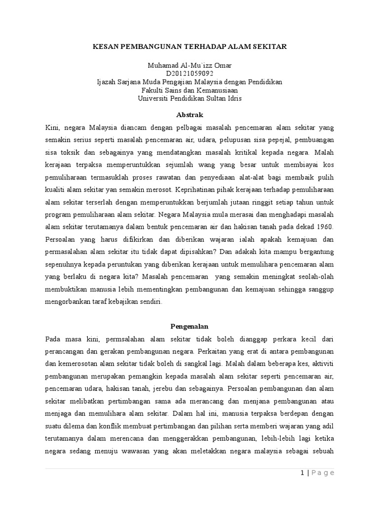 Impak Modenisasi Terhadap Alam Sekitar Jabatan Bahasa Dan