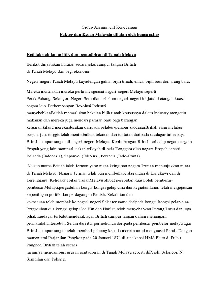Politik 1 demokrasi telah dibawa oleh barat suatu ketika dahulu dan sekaligus telah membawa kesan yang besar dalam sistem pentadbiran di tanah melayu yang sebelum ini mengamalkan sistem feudal iaitu pemerintahan beraja yang menganggap raja sebagai pemimpin yang mutlak. Bab 1 campur tangan british di tanah melayu faktor campur tangan brish di tanah melayu faktor ekonomi. Antaranya ialah ingin mendapatkan bahan mentah akibat daripada permintan yang meningkat di eropah. Tanpa pengawalan politik dan campur tangan dalam.