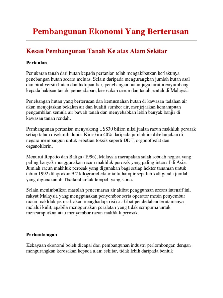 Pembangunan Ekonomi Yang Berterusan Kesan Pembangunan Tanah Ke Atas Alam Sekitar