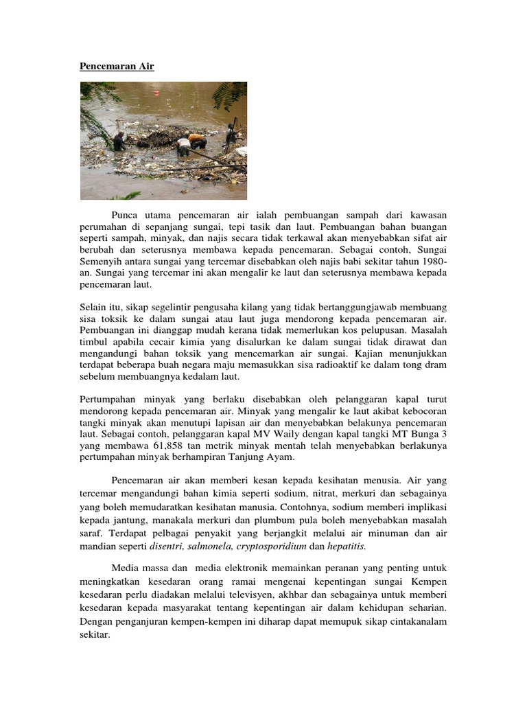 Case Study Docx Punca Punca Pencemaran Sungai Punca Utama Pencemaran Air Ialah Bahan Buangan Domestik Bahan Bahan Buangan Domestik Yang Terdiri Course Hero