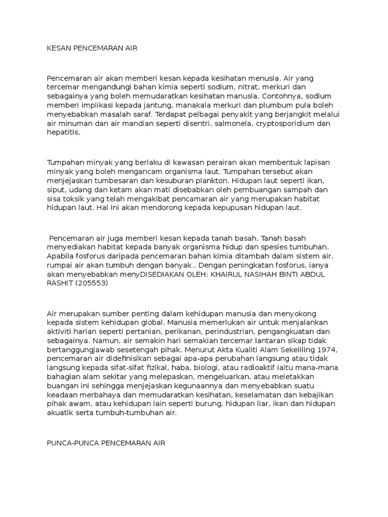 Kesan pencemaran cara pengawalan pencemaran. Sisa domestik di malaysia sisa yang terhasil dari kawasan perumahan. Kesan pembuangan sisa industri tehadapap alam sekitar kesan sisa industri toksik alam sekitar alam sekitar merupakan segala benda hidup dan bukan hidup yang wujudsecara semula jadi di permukaan bumi atau sebahagian daripadanya. Hidupan air akan mati apabila memakan bahan beracun dari sumber air yang telah tercemar ini.