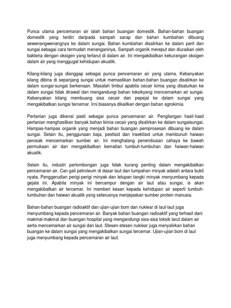 Contoh Karangan Pencemaran Sungai Pt3 Terbaik