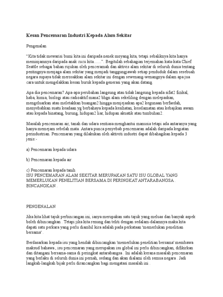 53085234 Kesan Pencemaran Industri Kepada Alam Sekitar Docx