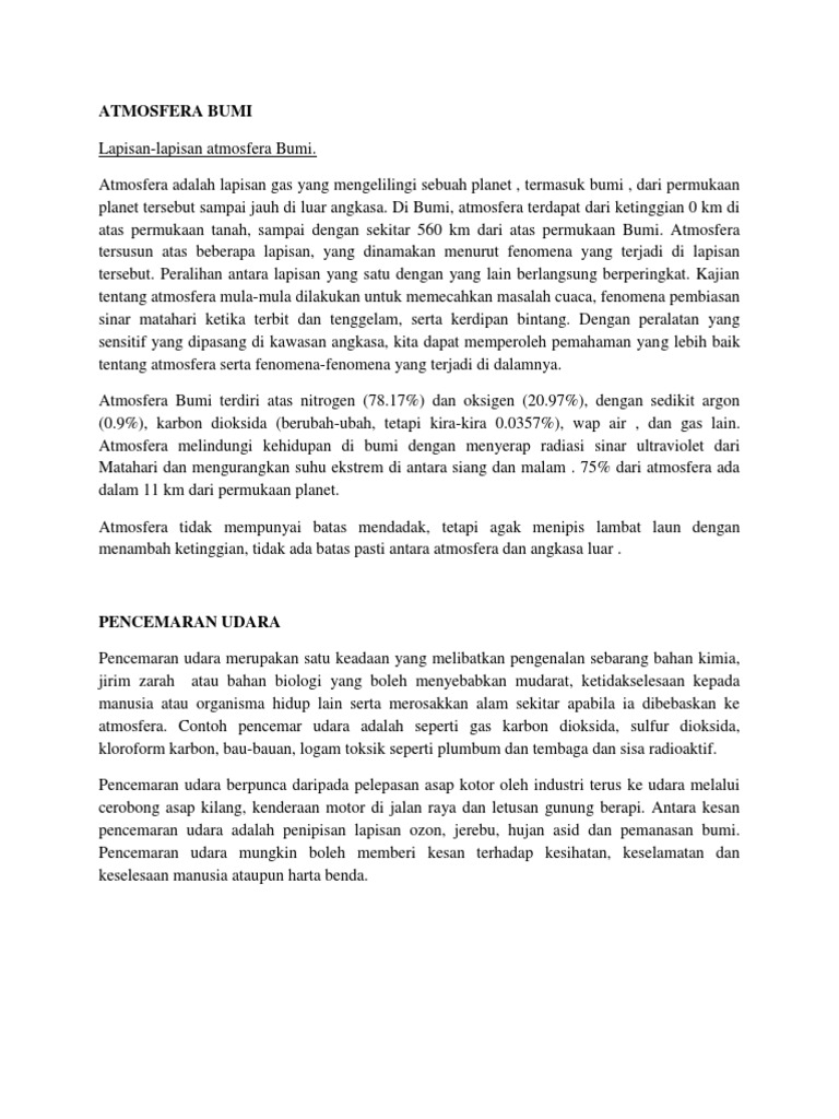 Alam sekitar yang sedang mengalami kemusnahan telah membawa banyak kemudaratan kepada manusia dan hidupan tidak kira hidupan di darat ataupun di air. Kesan kesan pencemaran udara kepada manusia dan alam sekitar posted on 25 mei 2009 by admin pencemaran udara dikaitkan dengan bahan bahan sintetik dan lain lain pengotor berbahaya yang meresap dan menjadi sebahagian udara.