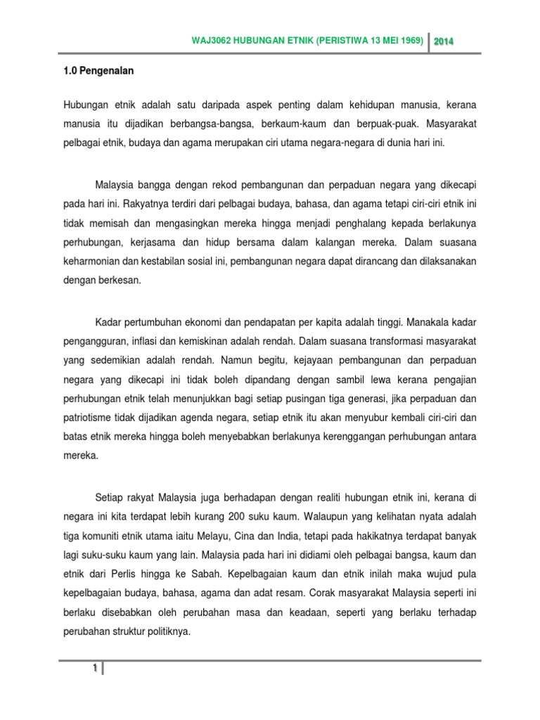 Kepentingan Hubungan Etnik Kesan Peristiwa 13 Mei 1969 Docx Document