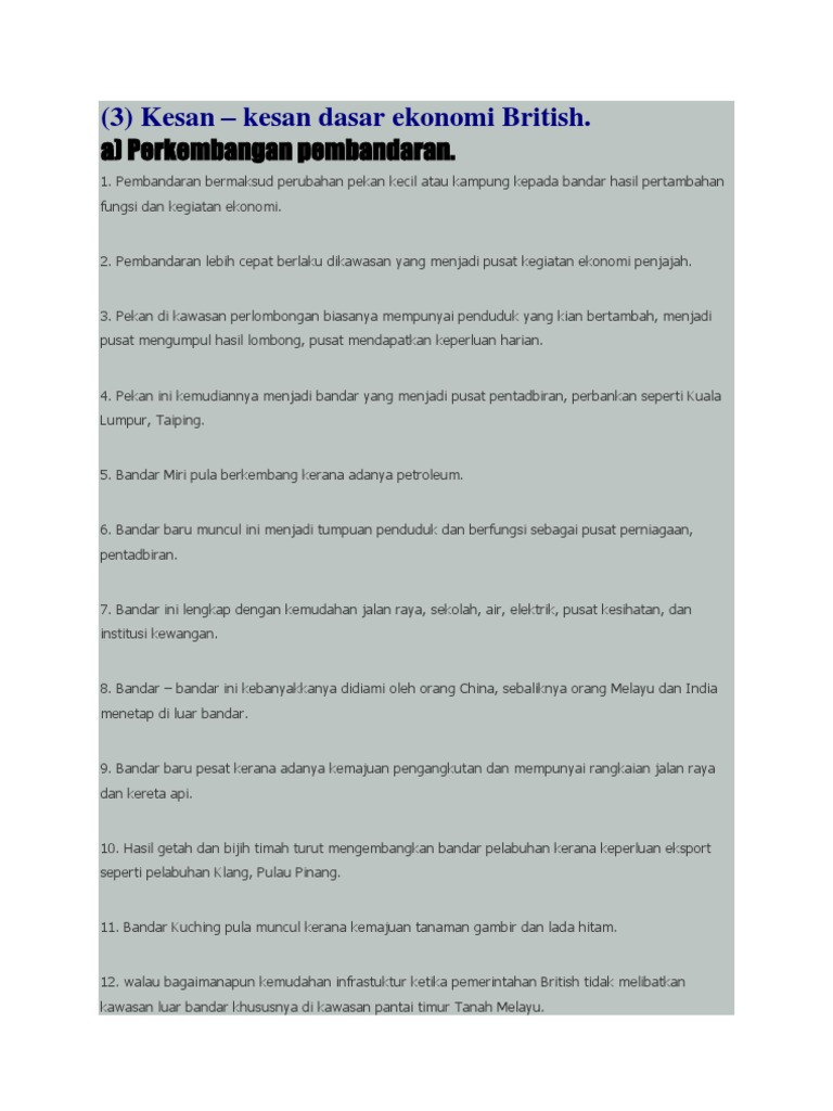 Dasar British Dan Kesannya Terhadap Ekonomi Negara 1
