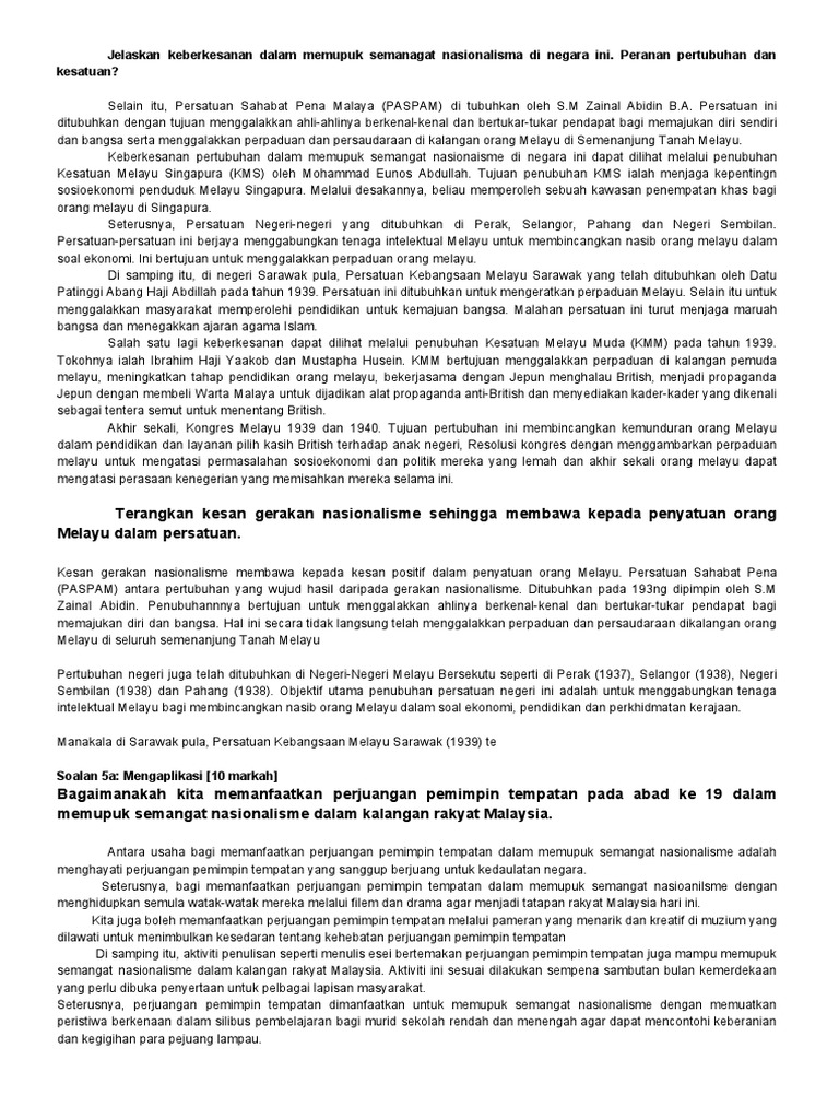 Terangkan Kesan Gerakan Nasionalisme Sehingga Membawa Kepada Penyatuan Orang Melayu Dalam Persatuan