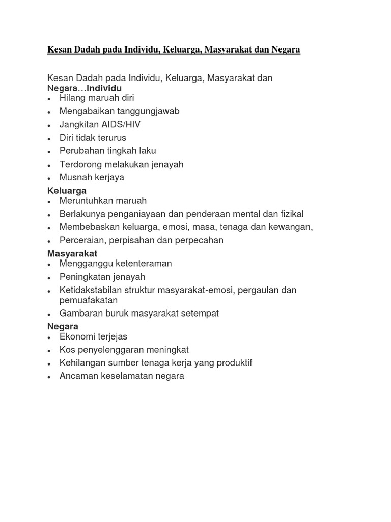 Kesan Dadah Pada Individu Keluarga Masyarakat Dan Negara