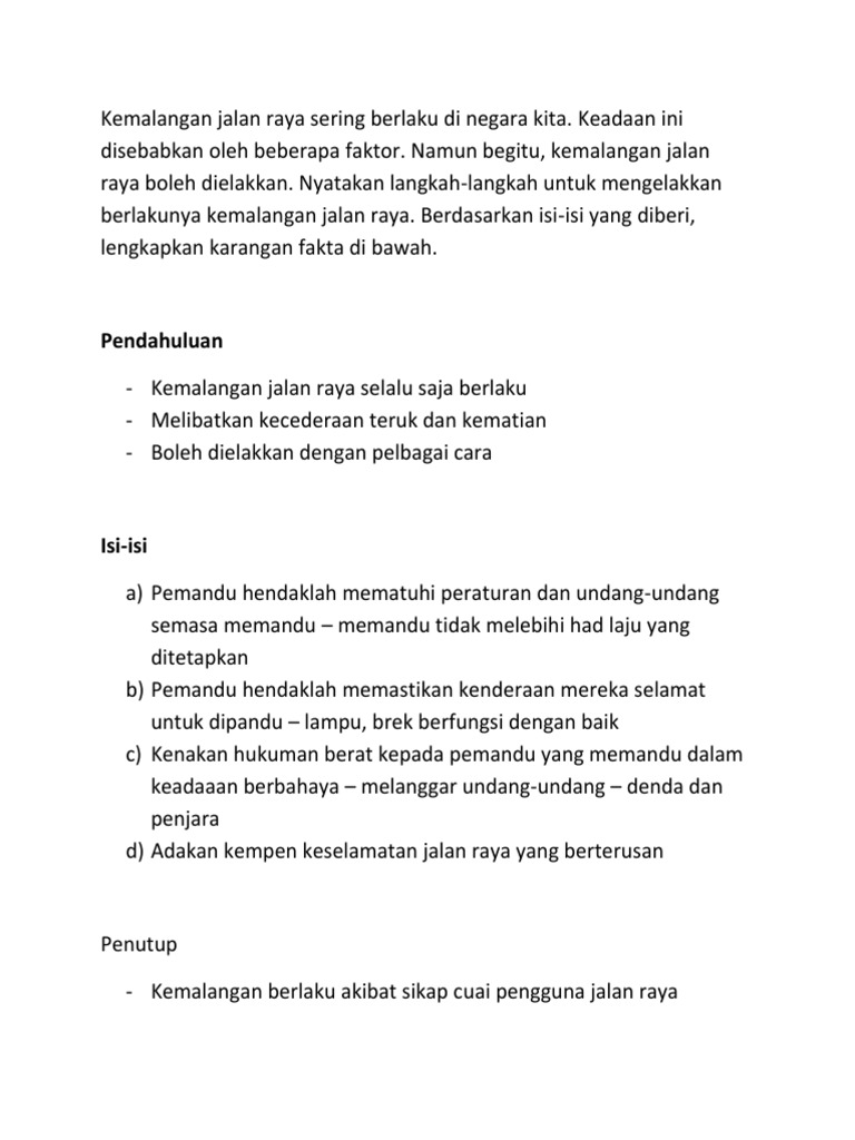 Kemalangan Jalan Raya Karangan Spm Ulasan Pt3 Punca Kemalangan Jalan Raya Skor A Bm Spm Pt3
