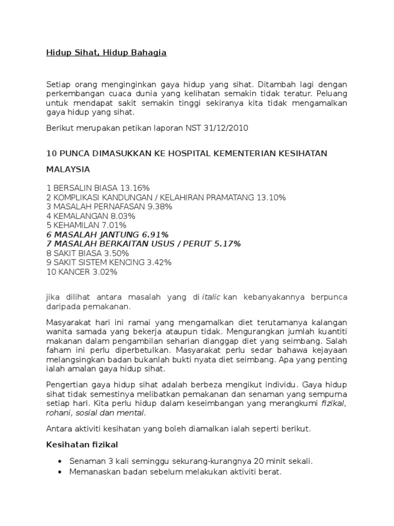 Keburukan Tidak Mengamalkan Gaya Hidup Sihat Docx