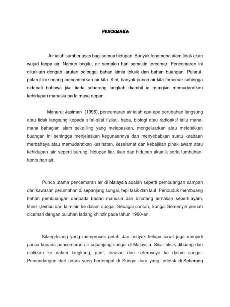 Punca Punca Pencemaran Sungai