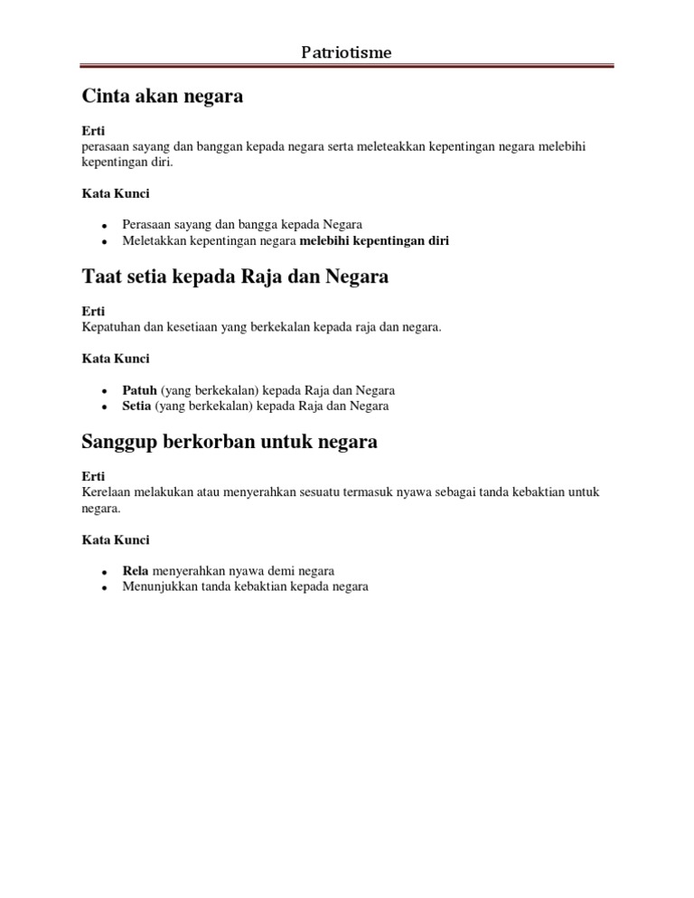 Bidang Pembelajaran 4 Nilai Berkaitan Dengan Patriotisme
