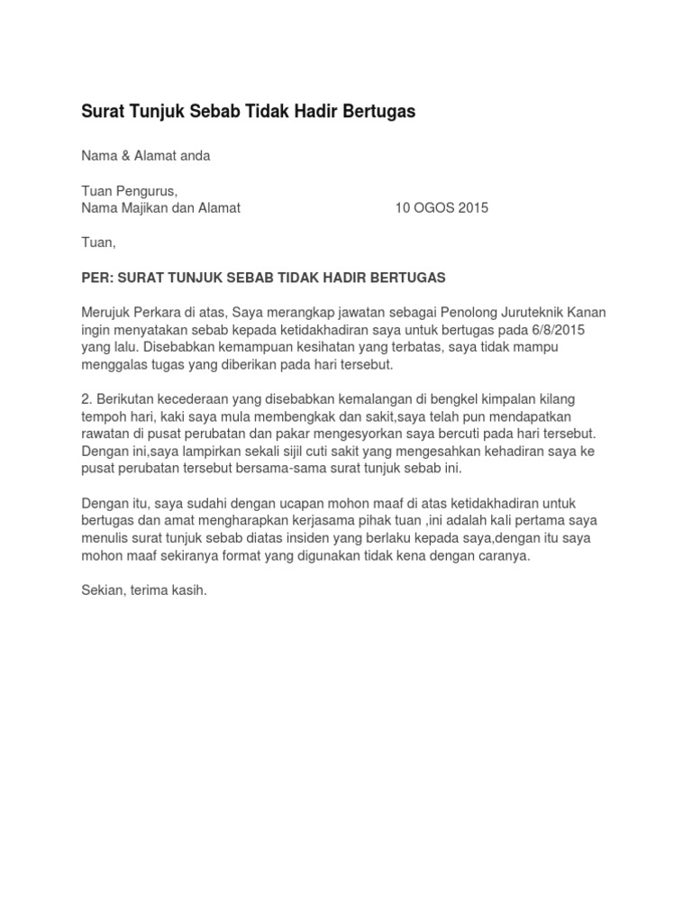 Surat Tunjuk Sebab Tidak Hadir Bertugas Docx