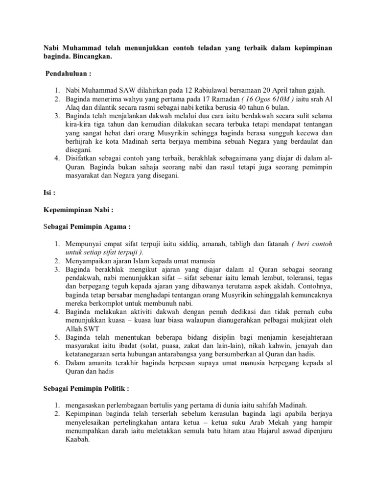 Menurut pandangan islam manusia dijadikan allah swt sebagai khalifah di muka bumi dan setiap manusia adalah pemimpin secara langsung atau tidak langsung. Siti zubaidah batrisyia nardine hana alya syazana sandya pemimpin negara pemimpin negara maksud diiktirafkan sebagai rasullullah dan pemimpin yang unggul. Baginda telah menerima wahyu yang pertama pada 17 ramadhan bersamaan 16 ogos 610 masihi iaitu melalui surah al alaq ayat 1 5. Baginda pemimpin diri sendiri yang berkesan.