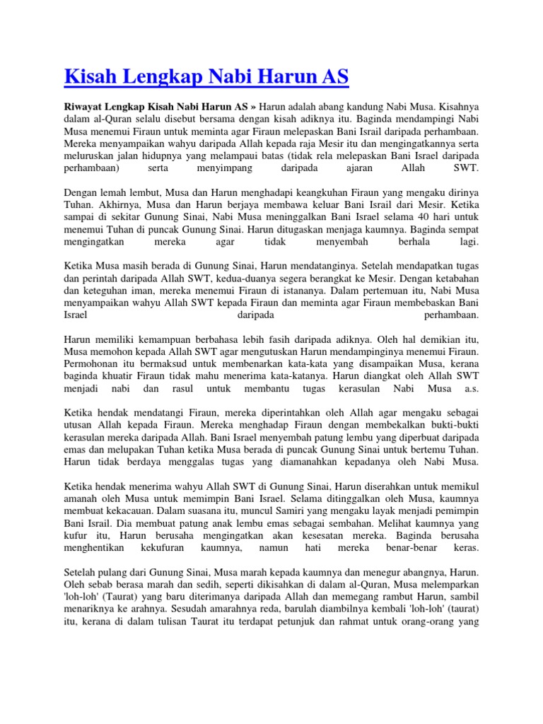 5 Kisah Nabi Harun Dan Mukjizatnya Awal Akhir Lengkap Kisah Nyata Terbaik