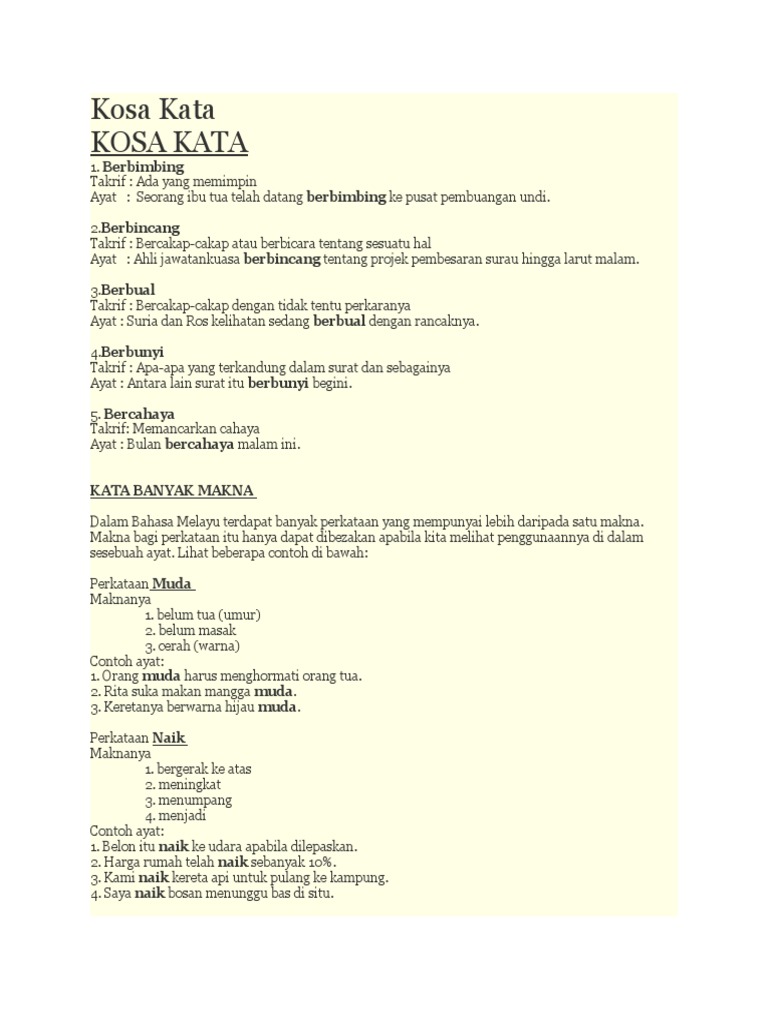 Kosa Kata Maksud Dan Contoh Ayat