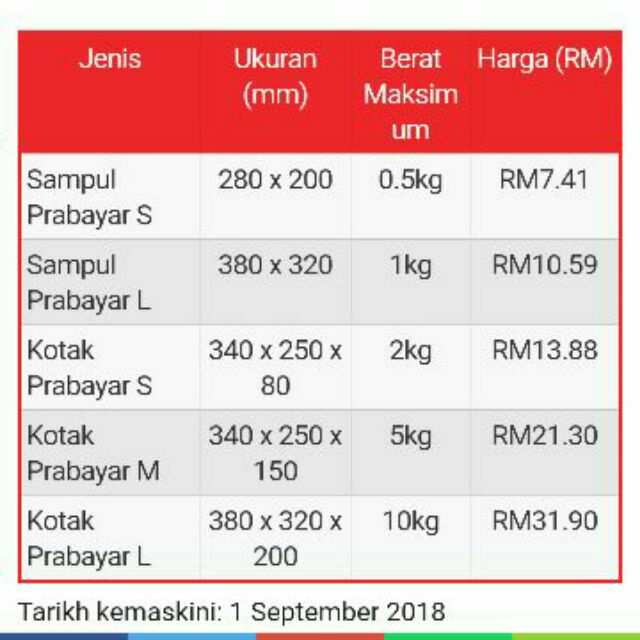 Senarai Harga Kotak Dan Sampul Prabayar Pos Laju Pos Ekspres 2020 My Panduan