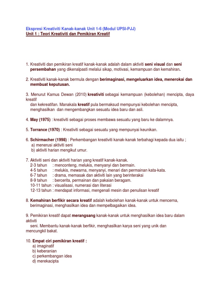 Pemikiran Kreatif Di Kalangan Kanak Kanak Docx