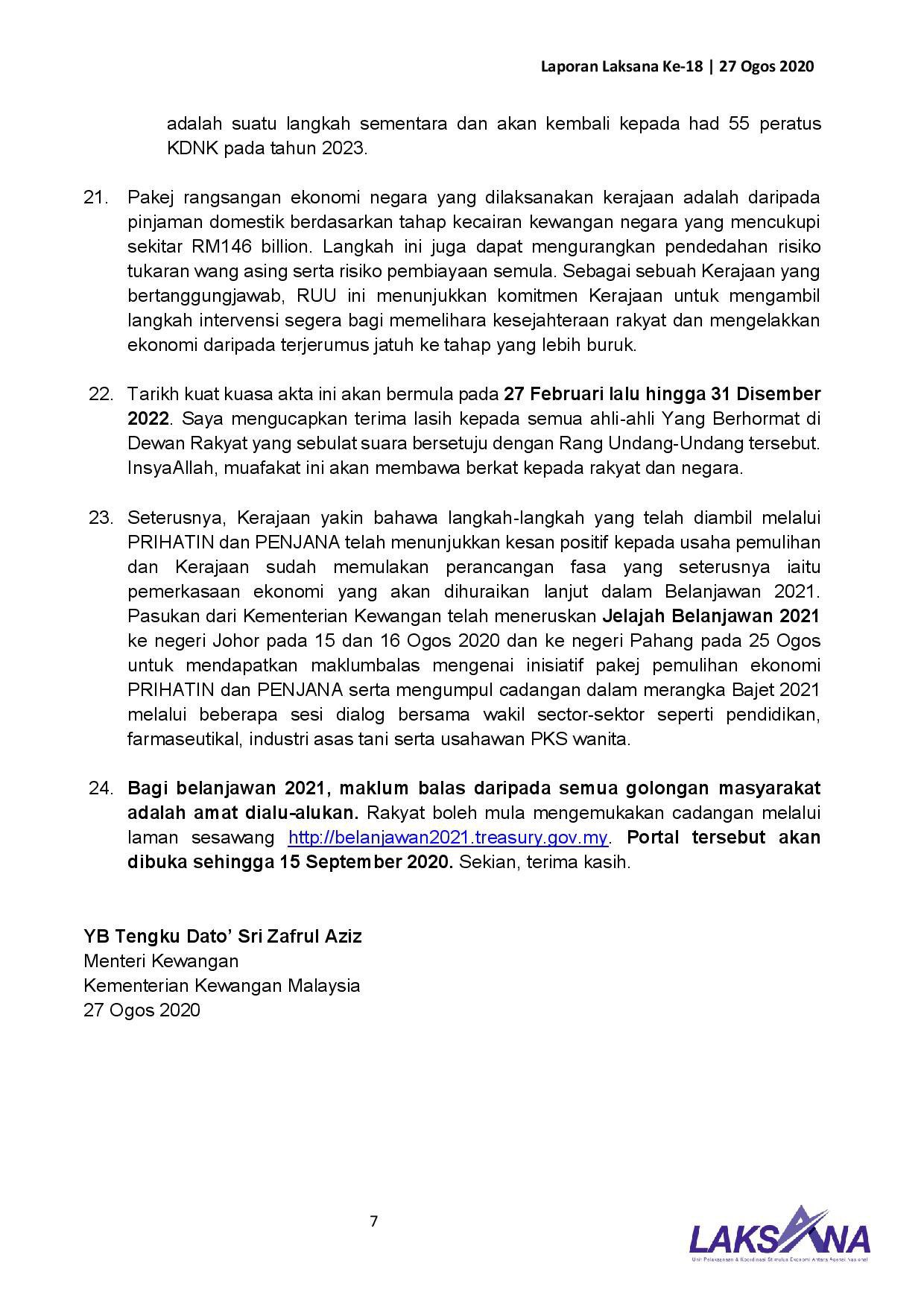 Tengku Zafrul On Twitter Sambungan Siaran Media Laporan Laksana Ke 18 Pelaksanaan Pakej Rangsangan Ekonomi Prihatin Rakyat Prihatin Pelan Jana Semula Ekonomi Negara Penjana Bertarikh 27 Ogos 2020 Https T Co Linmsev4hi