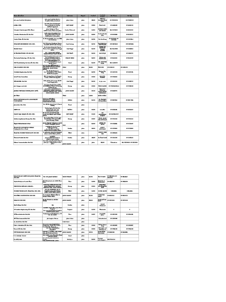 Syarikat Alamat Poskod Negeri Telefon Faks