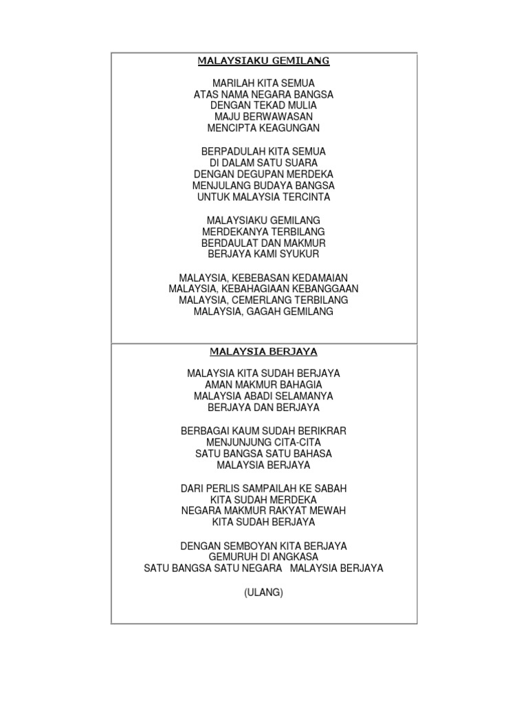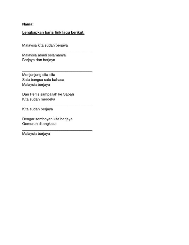 Lirik Lagu Patriotik Malaysia Docx