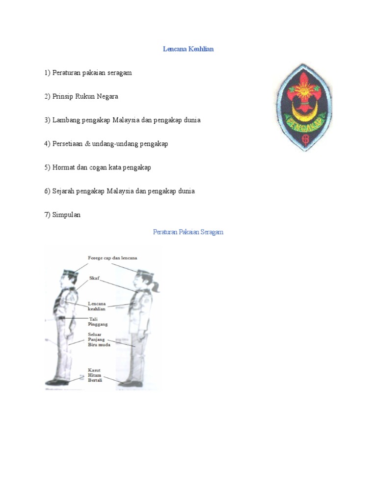 Lambang pengakap malaysia dan dunia l ambang pengakap malaysia terdapat 3 kelopak pada lambang yang membawa maksud 3 persetiaan pengakap iaitu taat kepada tuhan raja dan negara menolong orang setiap masa menurut undang undang pengakap. Sejarah pengakap di malaysia pergerakan pengakap diperkenalkan di singapura pada 1908 dan ditubuhkan secara rasmi pada july 2 1910 apabila scout master frank cooper sands f c. Mengetahui lima prinsip rukunegara 4. Menceritakan cerita hutan dengan ringkas 7.