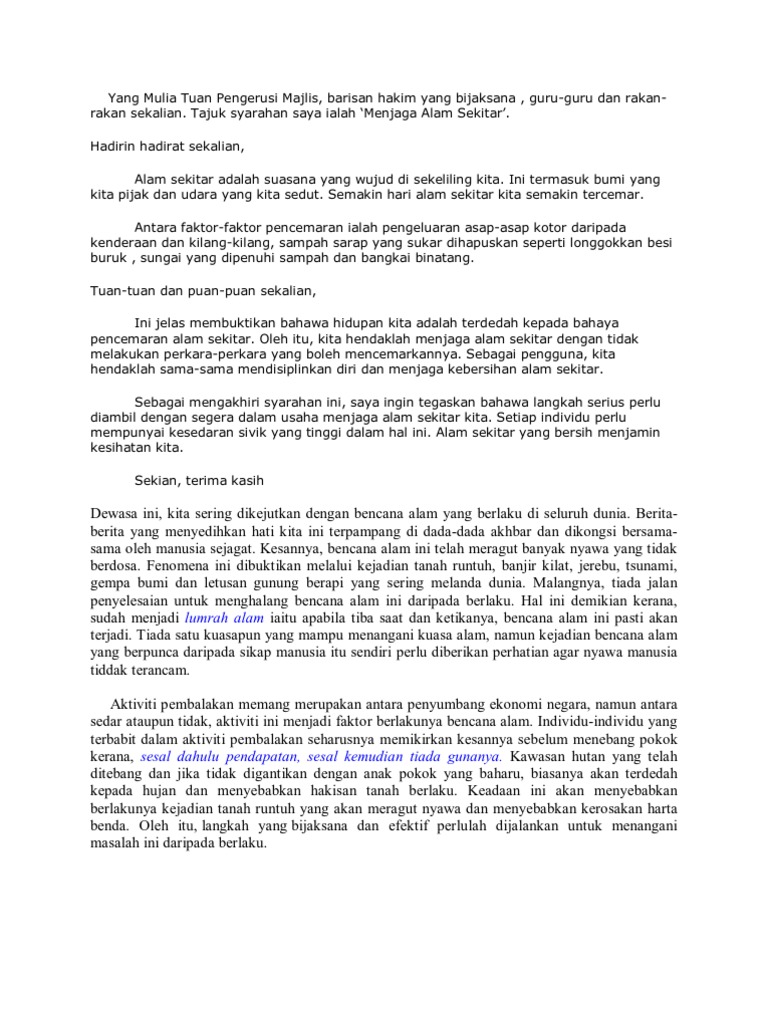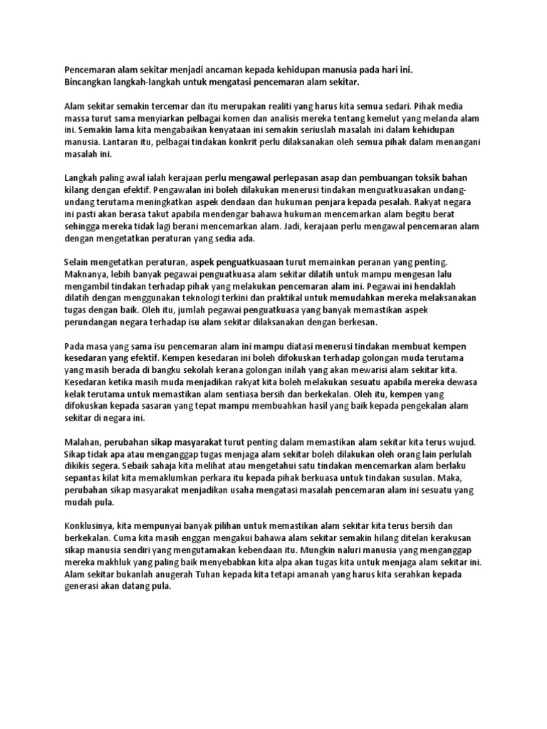 Contoh Karangan Pencemaran Alam Sekitar Contoh L