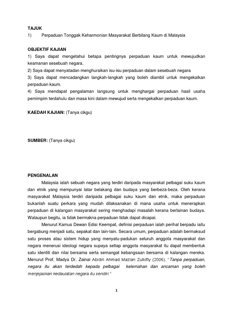 Pengajian Malaysia Perpaduan Kaum Pages 1 10 Flip Pdf Download Fliphtml5