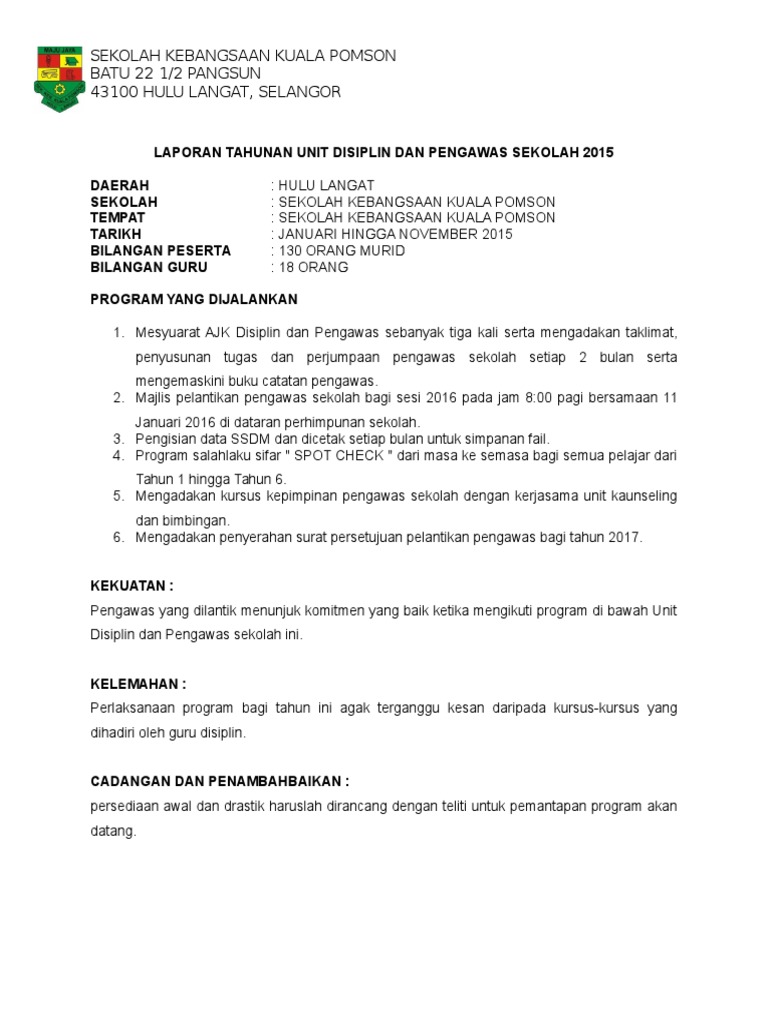 Laporan Tahunan Unit Disiplin Dan Pengawas Sekolah 2015