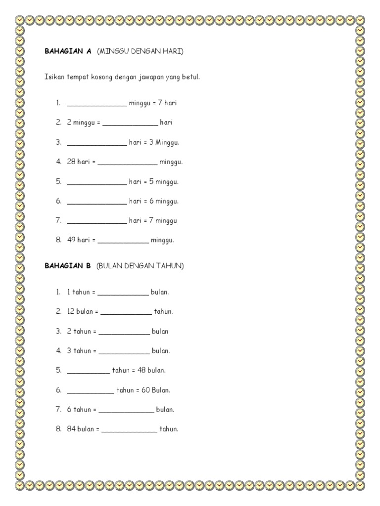 Kenali Dunia Matematik Contoh Instrumen Masa Dan Waktu Tahun 1