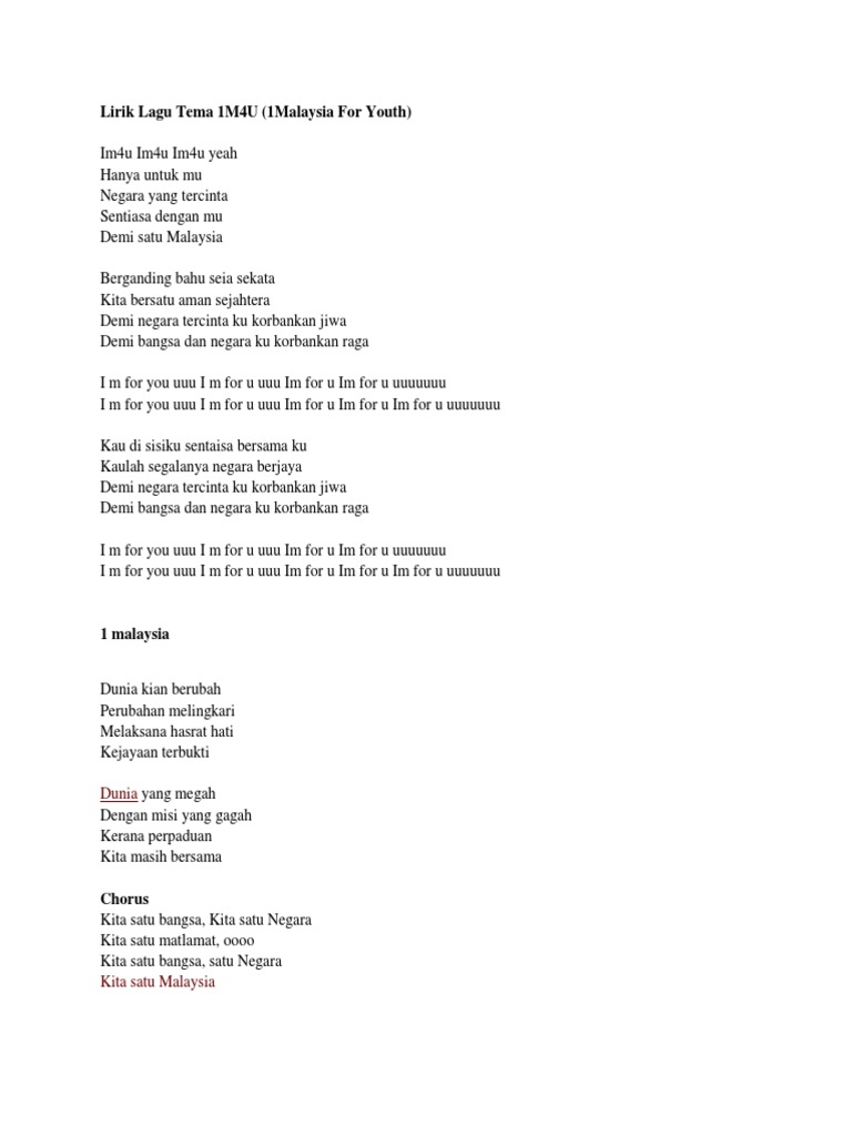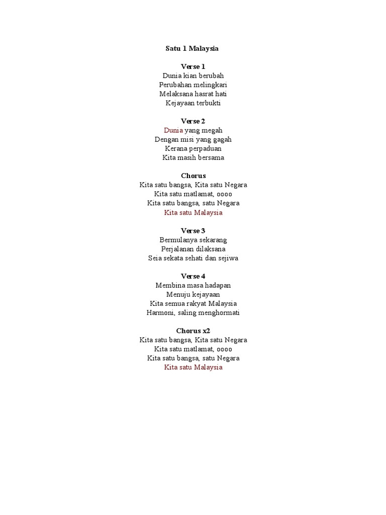 Lirik Lagu Satu 1 Malaysia Koir Pelajar Verse 1 Lirik Lagu Satu 1 Malaysia Koir Pelajar Verse 1