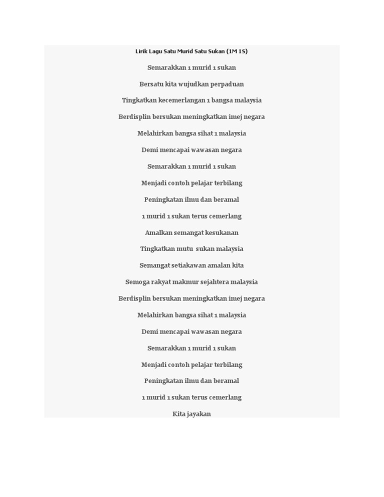 Doc Lirik Lagu Satu Murid Satu Sukan Aizul Fahmi Academia Edu