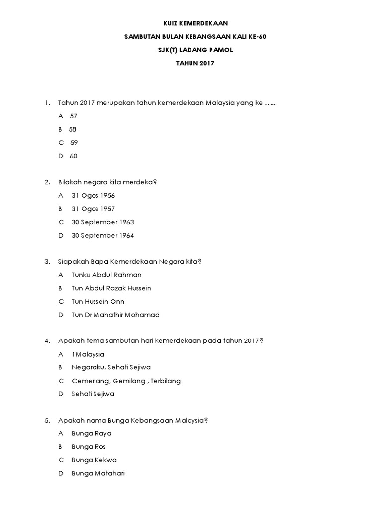 Soalan Kuiz Kemerdekaan