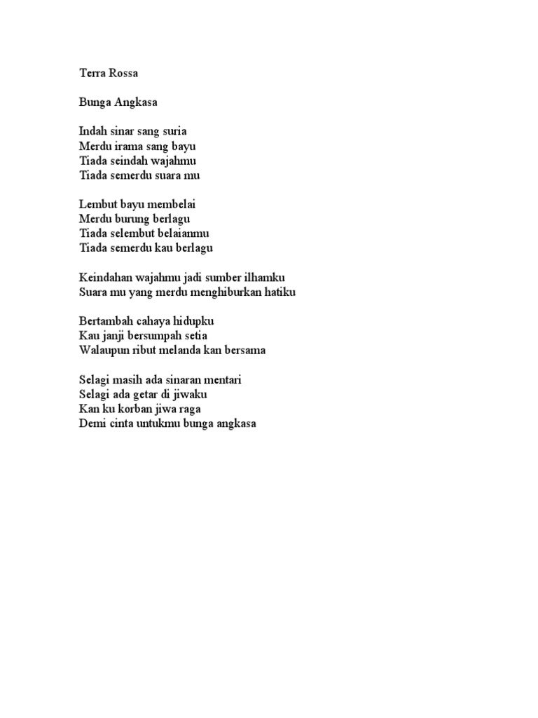 Lirik lagu bunga angkasa. Lirik lagu bunga ros lirik lagu bunga rosi lirik lagu terrarossa bunga angkasa lirik lagu bugis bunga rossi lirik lagu upin ipin bunga ros lirik lagu bunga angkasa terra rossa lirik lagu dua takke bunga rosi lirik lagu ali terra rossa bunga angkasa lirik lagu bunga ros sm salim ada di bawah ini. Lirik lagu bunga angkasa terra rossa. My daddy s favorite song. Kord lagu bunga angkasa adalah seperti berikut.