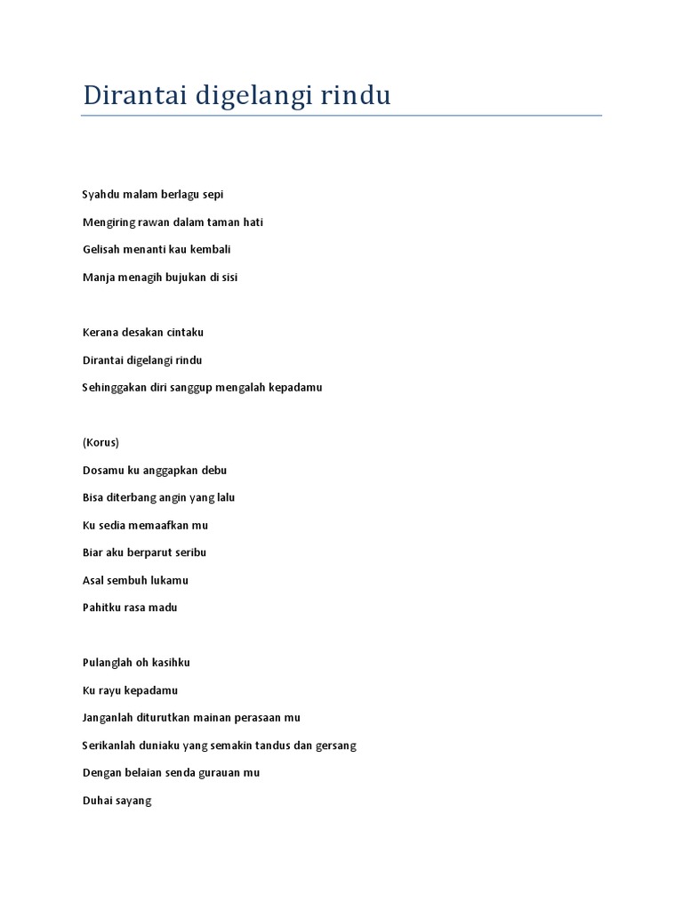 Lirik Lagu Malaysia Exist Di Rantai Di Gelangi Rindu