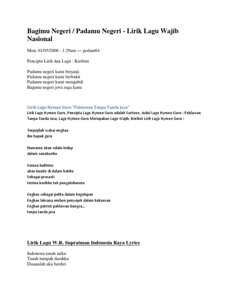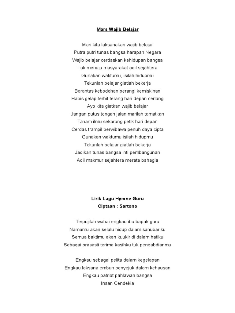 Kumpulan Lirik Lagu Wajib Nasional Pqn880y982n1