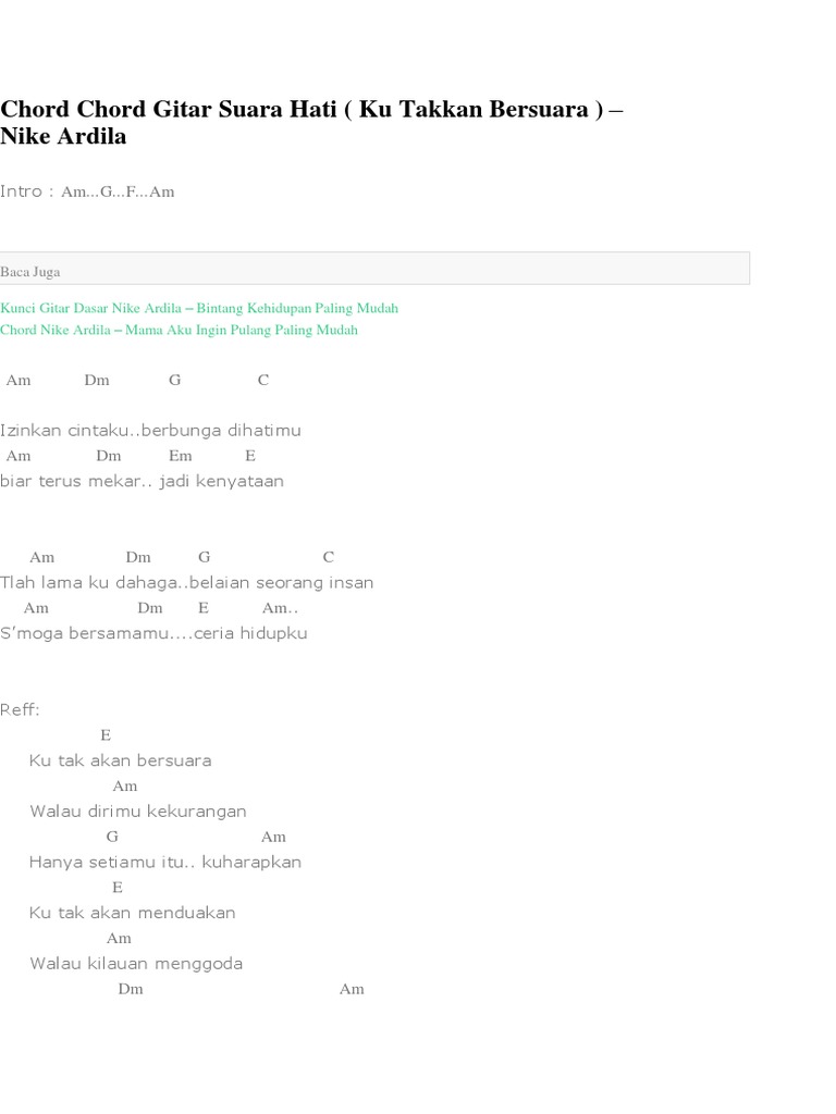 Chord Gitar Suara Hati By Nike Ardilla Ku Tak Akan Bersuara Semua Halaman Sonora Id