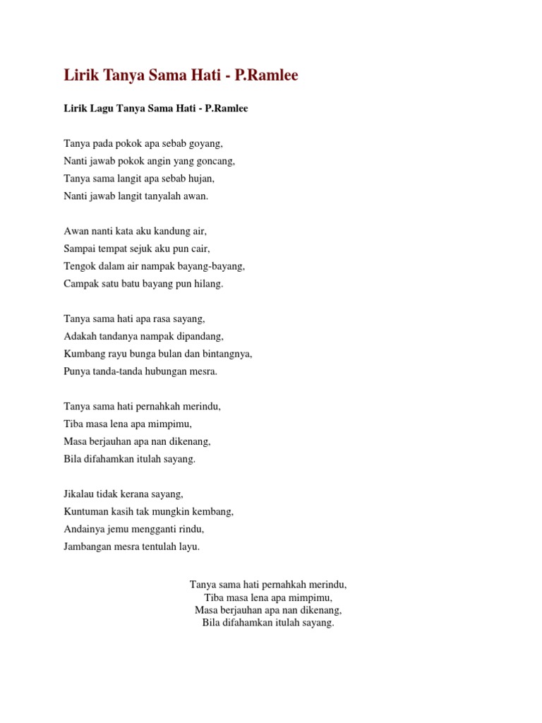 Lirik Lagu P Ramlee Tak Seindah Bunga Liriklagu Id