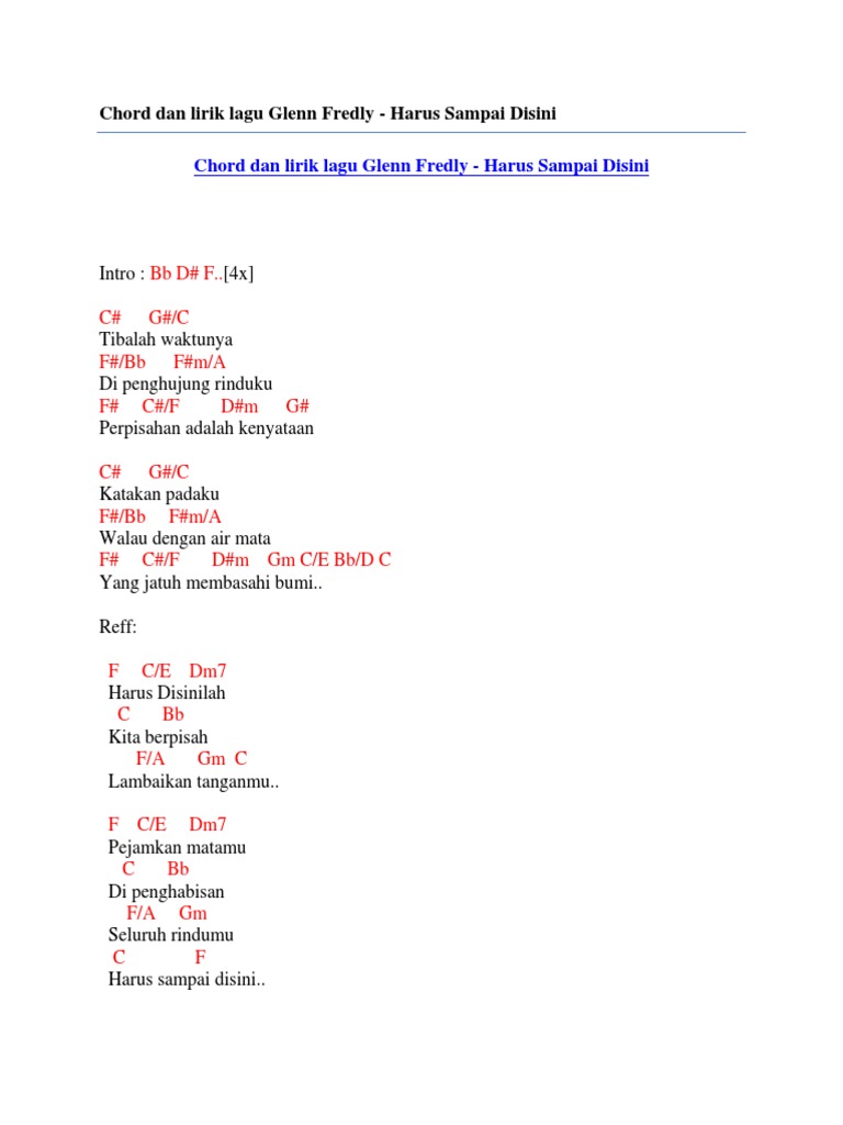 Chord Dan Lirik Lagu Glenn Fredly Harus Sampai Disini