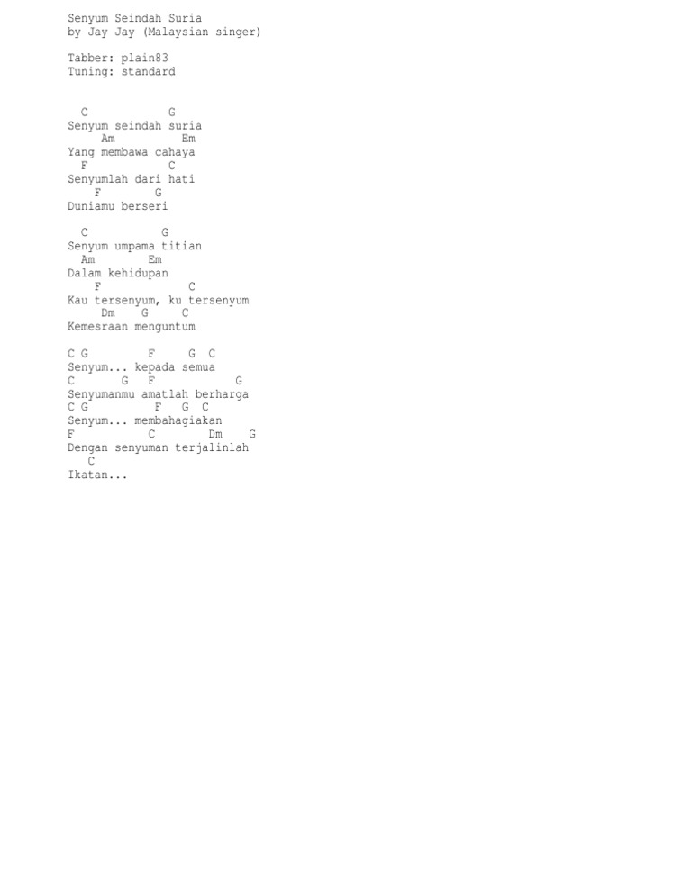 Senyum seindah suria jay jay lirik. Senyum kepada semua senyumanmu amatlah berharga senyum membahagiakan dengan senyuman terjalinlah ikatan. This video is unavailable. Senyum umpama titian dalam kehidupan kau tersenyum ku tersenyum kemesraan menguntum.