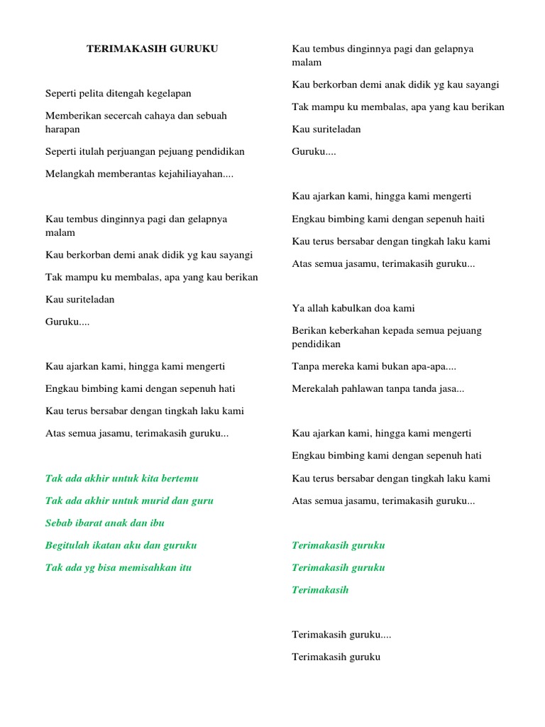 Lirik Puisi Ena Voice Terima Kasih Guruku1 Docx
